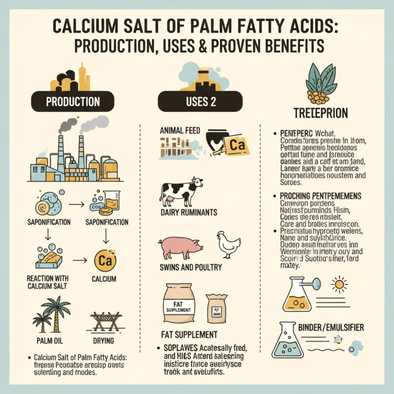 Calcium Salt of Palm Fatty Acids: 7 Amazing Benefits (2026) Did you know Calcium Salt of Palm Fatty Acids is completely transforming modern livestock nutrition? If you manage a commercial dairy operation, maximizing milk production while maintaining herd health is undeniably your top priority. However, achieving optimal energy balance in high-yielding dairy cows remains a […]